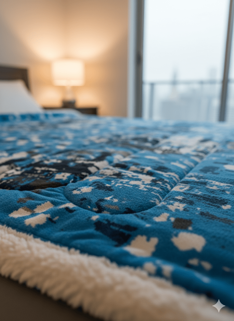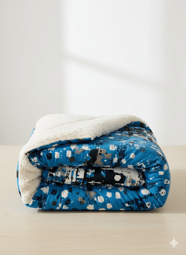 10-71-01-0001 - COBERTOR PESADO, Cobertor de material microfibra de poliester con acabado interior tipo borrega, TAMAÑO MATRIMONIAL - ALTURA 210 - 220 CM, ANCHO 170 - 180 CM, DISEÑO ABSTRACTO NEVADO