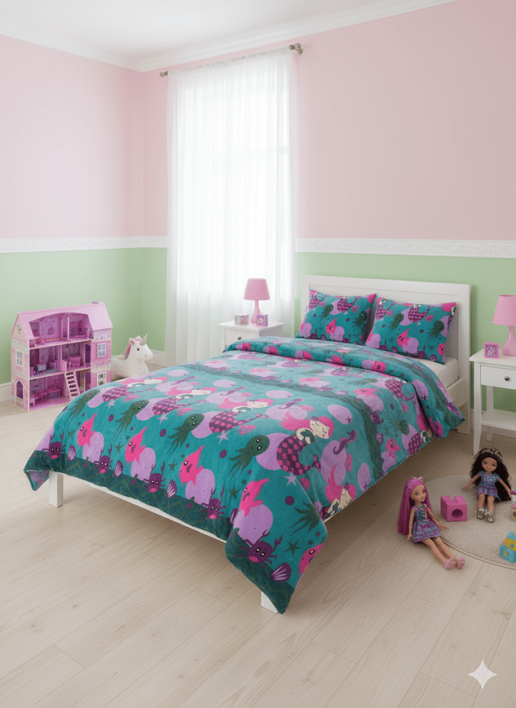 10-71-02-0077 - FRAZADA LIGERA, Cobertor de material microfibra de poliester con acabado interior tipo borrega, TAMAÑO MATRIMONIAL - ALTURA 210 - 220 CM, ANCHO 170 - 180 CM, DISEÑO INFANTIL SIRENITA