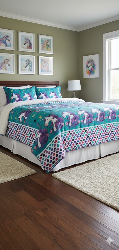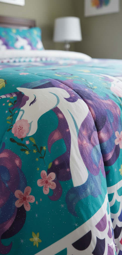 10-71-02-0090 - FRAZADA LIGERA, Cobertor de material microfibra de poliester con acabado interior tipo borrega, TAMAÑO KING SIZE - ALTURA 210 - 220 CM, ANCHO 230 - 240 CM, DISEÑO INFANTIL UNICORNIO 2